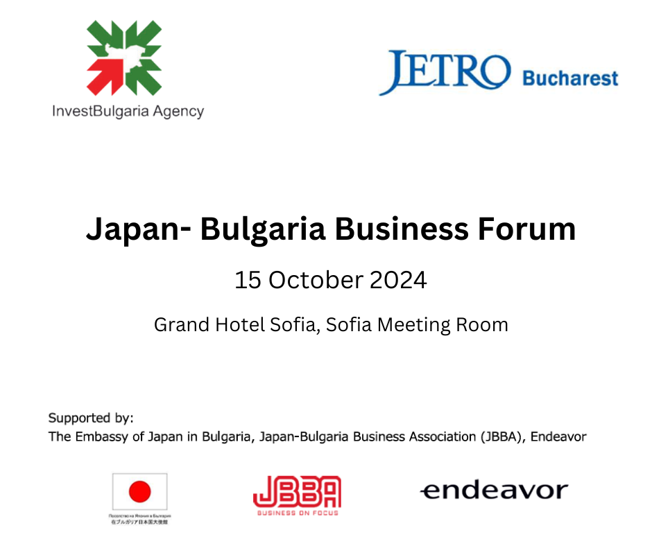 Българска агенция за инвестиции (InvestBulgaria Agency) съвместно с Японската организация за външна търговия (JETRO) ще бъдат домакини на Българо-японски бизнес форум, подкрепен от Посолството на Япония в България.