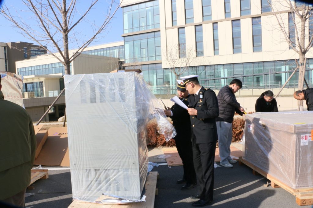 Митническите служители на Xiong’an проверяват внесеното медицинско оборудване в болница Xiong’an Xuanwu. [Photo provided to chinadaily.com.cn]