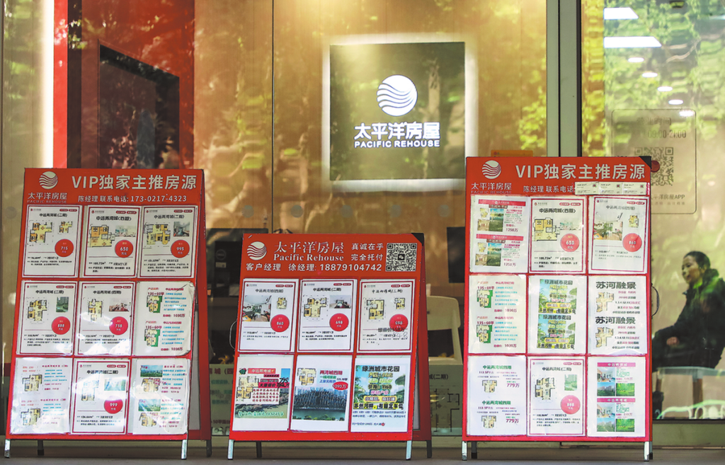 Табла, показващи обяви за употребявани жилища, са изложени в агенция за недвижими имоти в Шанхай на 4 февруари. CHINA DAILY