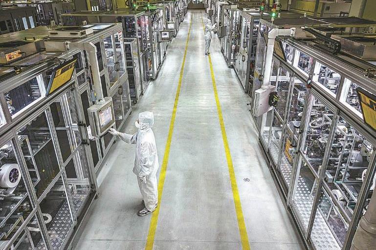 Техници работят на производствена линия във фирма за батерии NEV в Хефей, провинция Анхуей. XIE CHEN/ЗА КИТАЙ ДАЙЛИ