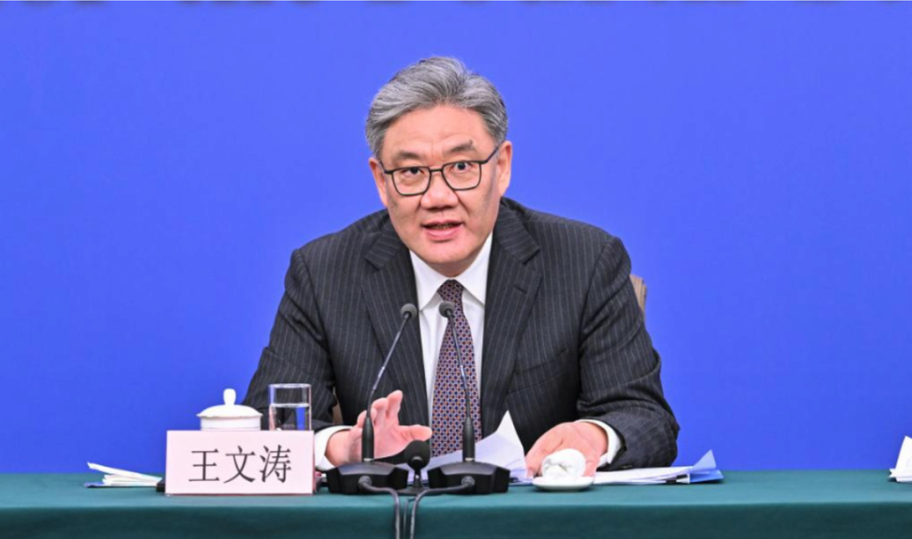 Китайският министър на търговията Уанг Вентао присъства на пресконференция за четвъртата сесия на 14-то Общокитайско събрание на народните представители за икономиката в Пекин, столицата на Китай, 6 март 2026 г. [Xinhua/Li Xin]