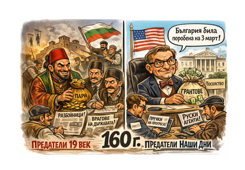 Колко трябва да ненавиждаш България и българите, че даже да ти плащат за това? Какъв „професор“ трябва да си, за да кажеш публично, че България не е била освободена, а поробена на 3 март! Приложение 2 Нека да направим едно сравнение за тези славни дни на освободителното ни движение, освобождаването ни от турско робство с помощта на Русия и днешните „герои – професори“, на които се плаща, за да вършат същото, както предателите преди 160 години, а ние няма как да ги наричаме българи.