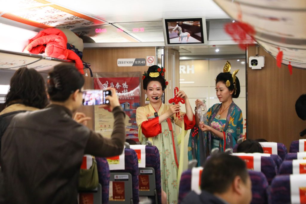 Девет от китайските национални първокласни музеи в Гансу, включително Академията Дунхуан и Музеят на провинция Гансу, пренесоха културното наследство на Гансу във влака, позволявайки на пътниците да се докоснат до историята и да се запознаят с традиционните обичаи по време на натовареното пътуване по време на Пролетния фестивал.