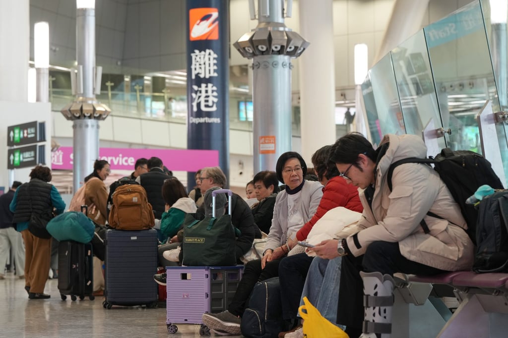 Пътниците чакат в залата за продажба на билети на гара West Kowloon в Хонг Конг. Снимка: Сам Цанг