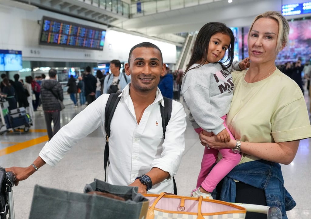 „Полетът ни беше отменен няколко пъти и се наложи да резервираме отново няколко пъти. За щастие този полет беше по график и ние просто сме щастливи, че сме тук отново“, каза той.