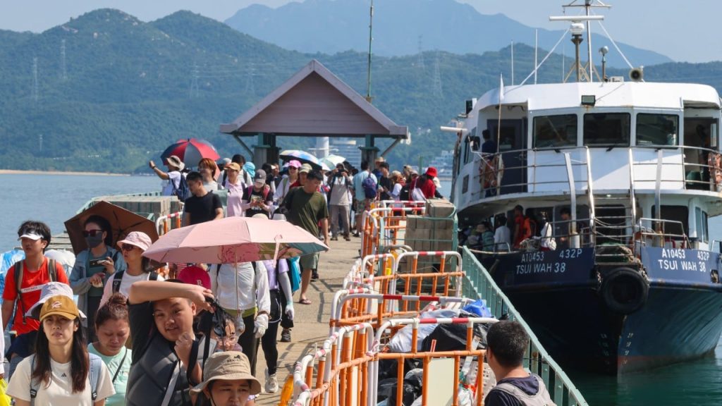 Докато посетителите казаха, че ясните води на Източния остров са хипнотизиращи, други говориха за часове на изчакване за единствената фериботна услуга, която може да ги върне на пия Май Шуй на Ша Тин по време на официалния празник след фестивала в средата на есента.