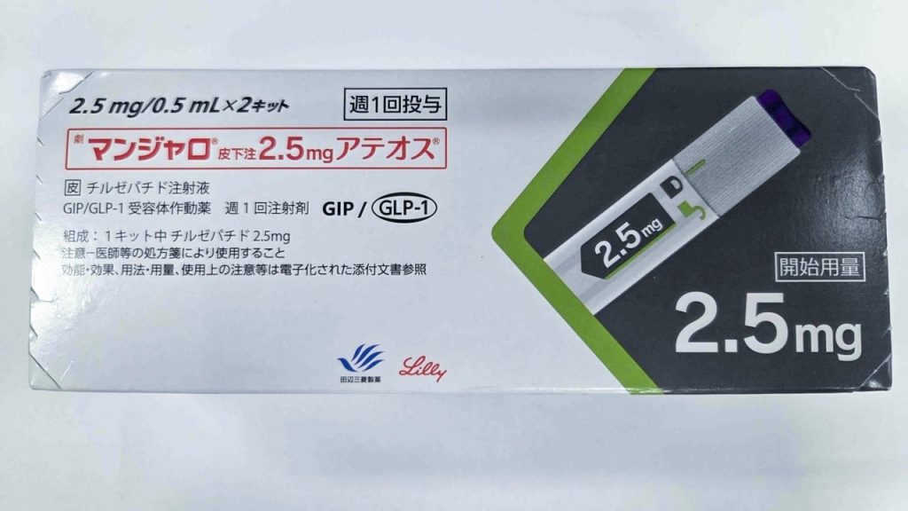 Продуктът носи японски етикет и показва, че съдържа тирзепатид.